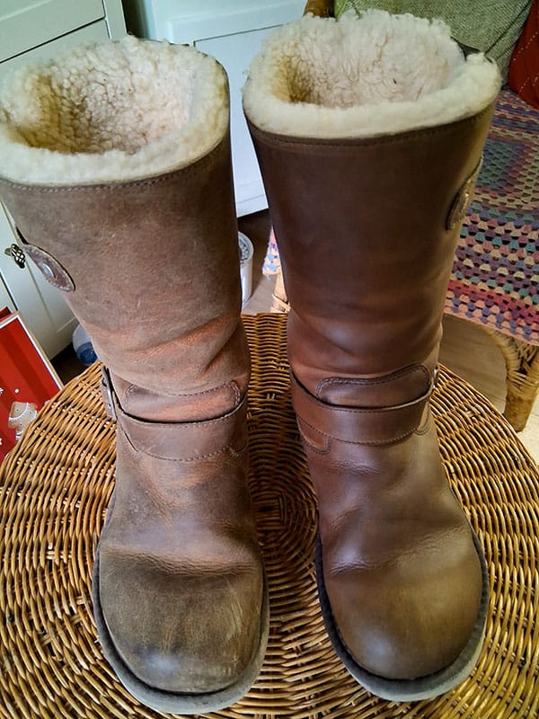 Products before and after using Leather Genie Cleaner and Leather Genie Balsam